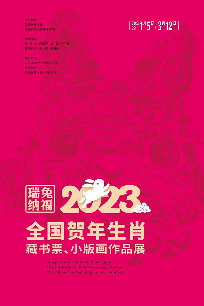 2023年是農歷癸卯兔年,本次展覽以“瑞兔納?!睘轭},展出入選的100幅賀年生肖藏書票和100幅賀年生肖小版畫,以此營造和渲染喜慶祥和的春節氣氛,推動版畫藝術和中國傳統生肖文化的融合創新。