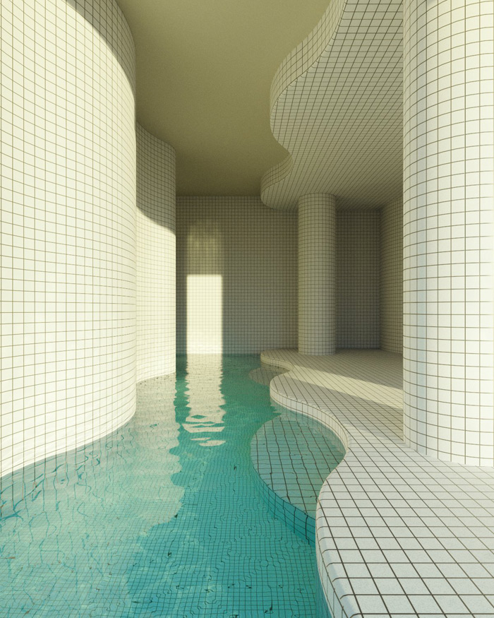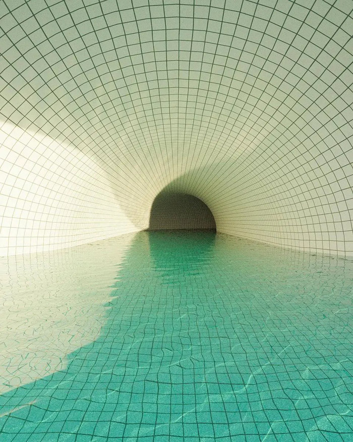 Jared Pike是紐約一位設計師和藝術家,他創造了一系列3D渲染的泳池作品并上傳到互聯網,迅速引起了大量關注、共鳴與熱議。