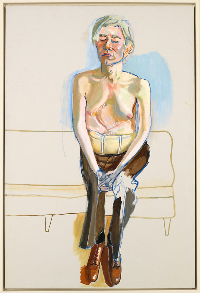 愛麗絲·尼爾有很多名人、藝術家和詩人朋友,她為他們畫像經常呈現出常人難以窺測的面貌。其中令人震撼的是她給安迪沃霍爾畫的一幅畫像,沃霍爾當時早已名滿天下,兩年前他遭遇了槍擊,正處在傷病期,尼爾不知道用什么辦法讓這位大藝術家脫下上衣,露出了松弛下垂的男性乳房和肚子上捆扎的繃帶,瞇著眼睛的沃霍爾顯然狀態不佳,只有筆挺的西褲、閃亮的尖頭皮鞋和挺立的坐姿暗示著這位藝術家的尊貴地位。這可能是有史以來最袒露真實也是最出色的名人畫像之一,絲毫不遜色于弗洛依德筆下那幅衰老的英國女王畫像。