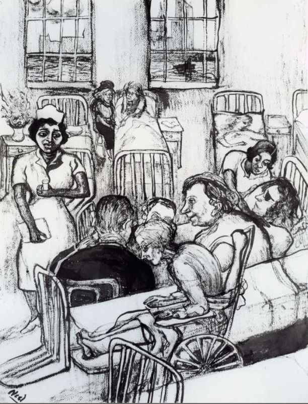 “Black Draftee (James Hunter) (1965)”描繪了一位剛被越南戰爭征召入伍的年輕黑人,他臉上心煩意亂和凄涼的表情暗示了他的不安,尼爾僅僅完成了頭部的塑造,身體僅僅描繪了輪廓,當年輕人因為參加戰爭再也沒有回到畫室后,尼爾宣布這張畫已經完成,它獻給了未從越南戰爭中歸來的整整一代人。