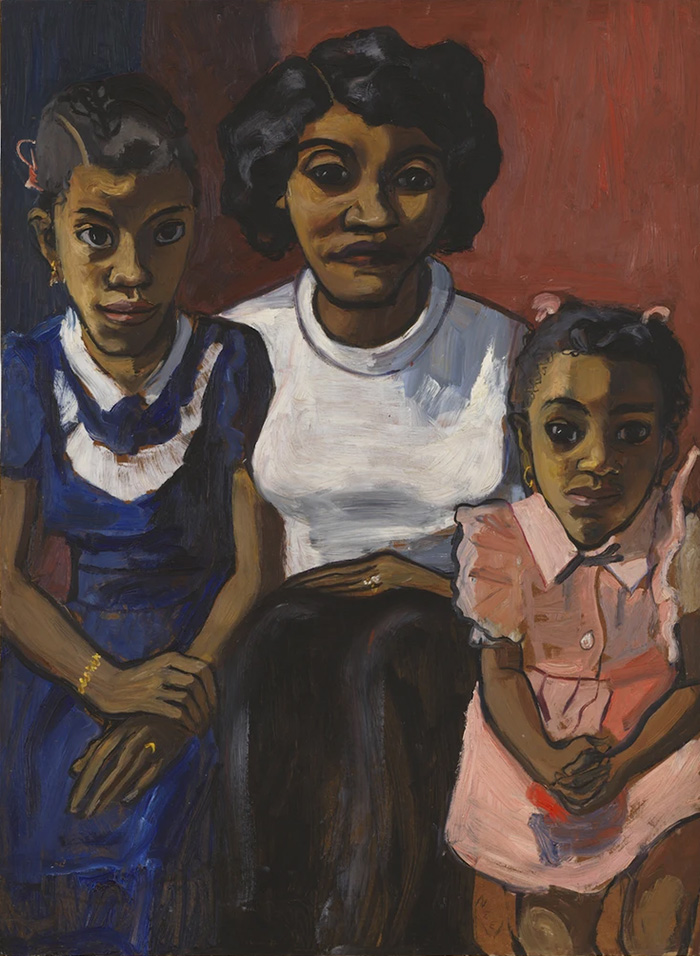 愛麗絲·尼爾 (ALICE NEEL),“西班牙裔美國黑人家庭”,1950 年。私人收藏,芝加哥。? 愛麗絲尼爾莊園。由紐約/倫敦的 DAVID ZWIRNER 和倫敦的 VICTORIA MIRO 友情提供。