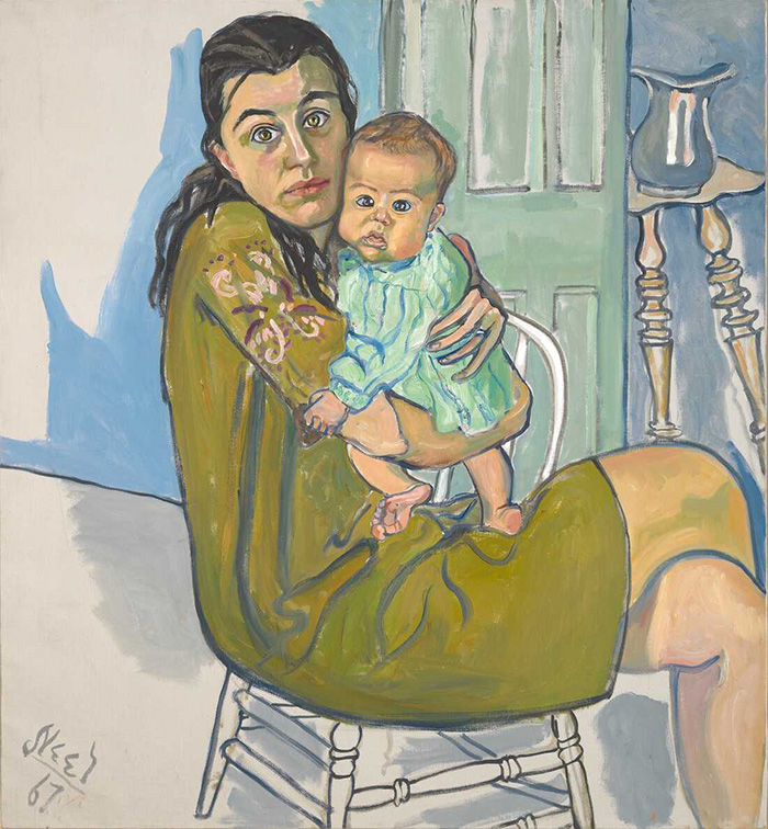 男性畫家避之不及的懷孕的女性形象也經常出現在她的筆下,挺著大肚子的女人們失去了美麗優雅的形體,飽受生理的折磨,尼爾曾是她們中的一員,她理解她們,以女性自身的視角觀察描繪她們最真實的狀態,這就徹底顛覆了男性視角的凝視,女人不是男性欲望的載體,而是真實完整的生命狀態,這也是她被女權主義者欣賞之處。