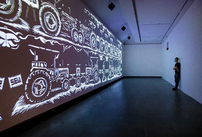 劉慶元:我個人理解當代藝術不是媒體決定論,而是每個個體/階層/種性/族群所處的不同社會語境之下的行動思考和持續介入其中的全球化共振,批評、反思和問題意識應該是一直在被主動生產和迭代轉換的,它是分布各地的、激蕩的能量流動。我用木刻參加各種類型的展覽和活動,或許就是從木刻作為歷史悠久的小眾媒介藝術出發,然后在漫長實踐歲月中彼此適應和改造,木刻本身被賦予的各種表述于我都是重新思考和反向推演,因為當下文化實踐會推著你走,我不太在意身份認同。木刻越有限它給你的實驗性才更有可能性,有限制有規約,這樣才能在被動中發現主動,哪怕只是一點點也是在面對自己的問題,也不必扮演一個媒介解放者。這些年我參加各種文化活動,我都會用木刻來連接不同領域不同的人和事,因為你要把時間和語言放在自己身上生長,自己成為自己的工具,使用者和被使用的工具互為彼此。