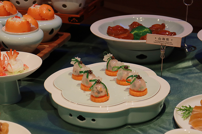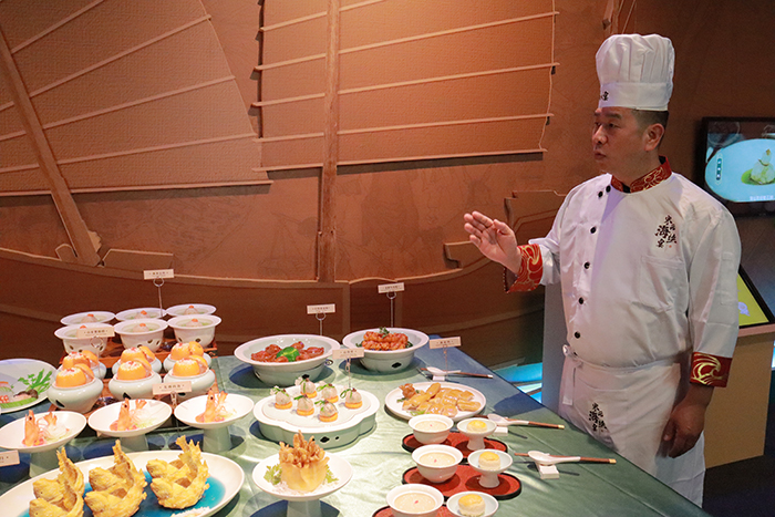 以南宋福建泉州石獅籍美食家林洪著作《山家清供》為還原藍本,“宋元海絲宴”兼收閩南名菜,展現了宋元時期世界海洋商貿中心獨特的美食文化。中國注冊烹飪大師胡滿榮在現場為大家講解菜肴的制作與內涵,他直言“宋元海絲宴”對他來說意味著“挑戰”。這場美食盛會,集山珍與海味于一席,融海絲、商貿、宗教等元素于一體,將菜品、宴席與宋元器皿、場景、樂曲、詩詞等融合,實現了傳統與發展創新的結合。