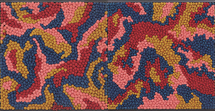 草間彌生2011年的作品《輪回》明顯受到了這些藝術家的影響。同年日本出現強地震與海嘯災難,《輪回》表現出了大自然不可抗拒的力量,也反思自然與人類的關系。如作品題目所說,這件畫作也闡釋著佛教的輪回教義,代表著重生,這也是草間彌生作品中所融合的東方文化。在我們的展覽目錄中也收錄了一些草間彌生的文章,她提到自己受到了亨利·摩爾、英國現代主義、如德國表現主義基弗以及如美國抽象主義考爾德等藝術家和藝術流派的影響。正如草間彌生在作品中表現出的“無限”概念,她的創作也是“無限”的,多種藝術和文化在她的作品中“消融”。