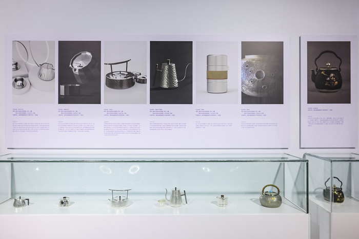 “鶴慶銀器”傳承人寸煜堅先生在清華大學美術學院院長馬賽教授,工業設計系主任張雷教授共同指導下,將傳統文化創造性轉化與創新性發展相結合。來自清華大學美術學院設計團隊的安鑫、李婧雯、薄彤光、丁博涵、伊鵬郡、鄭若楠、慕雨森等,經過多次的設計修改與推敲,終于和傳承人一起完成了最終的設計作品。其中代表性的作品有《雲龍仙翁》,金龍氣勢磅礴,波光映月,做到了動中有靜,靜中有動;《魚躍龍門》壺身鏨刻鑲嵌錦鯉高高躍出水面,形態逼真、栩栩如生;《方圓》取“天圓地方”中“規矩”“秩序”的文化含義,結合現代設計語言中簡潔的表現手法,將形式美與實用性相結合;《時間幾何》茶具,棱角分明的縱向幾何表面折射出獨特絢麗的光影效果,呈現出跳躍、對比強烈的視覺情緒體驗?!断楣凇氛w選擇中國古代帝王冕冠為意向進行造型設計,提手造型形似冕旒上的延板,大氣而端莊;《有矩》融入現代工業設計元素;《閑暇時光》幾何體大切面,賦予了銀器新的切割元素。