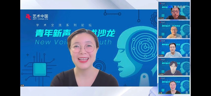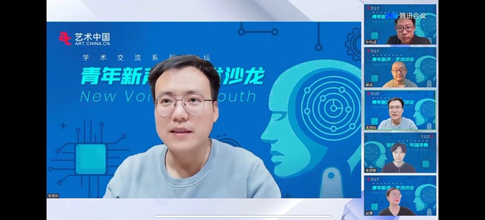 隨后,論壇發起人代表、中央美術學院副教授盧征遠講到,很榮幸在首期論壇請來四位很有專業建樹的朋友,很高興能夠在論壇上和各位觀眾見面,和來自各領域的青年專家學者們暢所欲言。青年新聲中的“青年”不只是年齡,更多的是一種狀態和希望,非常期待在這里聽到越來越多新銳的聲音。針對本期話題,他認為人有著自我思考和判斷能力,而AI是以人的目標為追隨的。因此,人在某種程度上有著AI未感知的部分,包括藝術領域。但隨著ChatGPT等新生事物的出現,使得AI逐步產生了質的變化,人類的發展或許也將進入新階段。