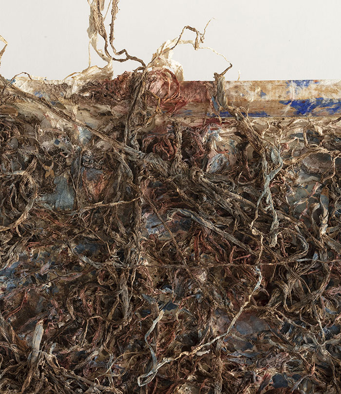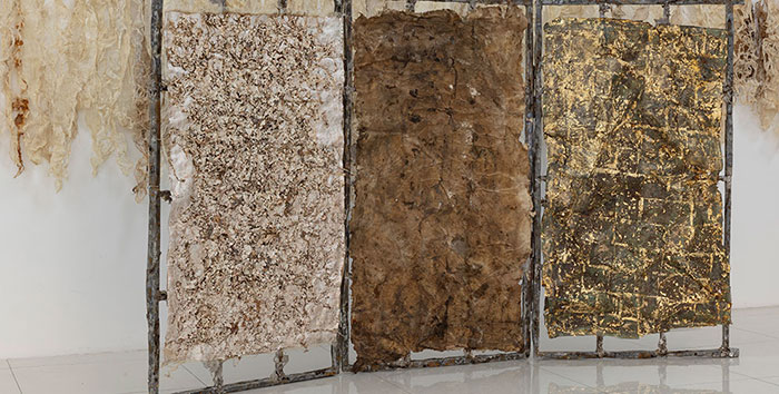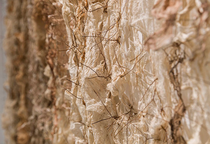 Q:對綜合材料作品來說,色彩的表達可能要排在材料語言的運用和表現力之后,您慣常使用植物染料為材料、作品染色,就色彩的表達和處理上,您秉承怎樣的理念?