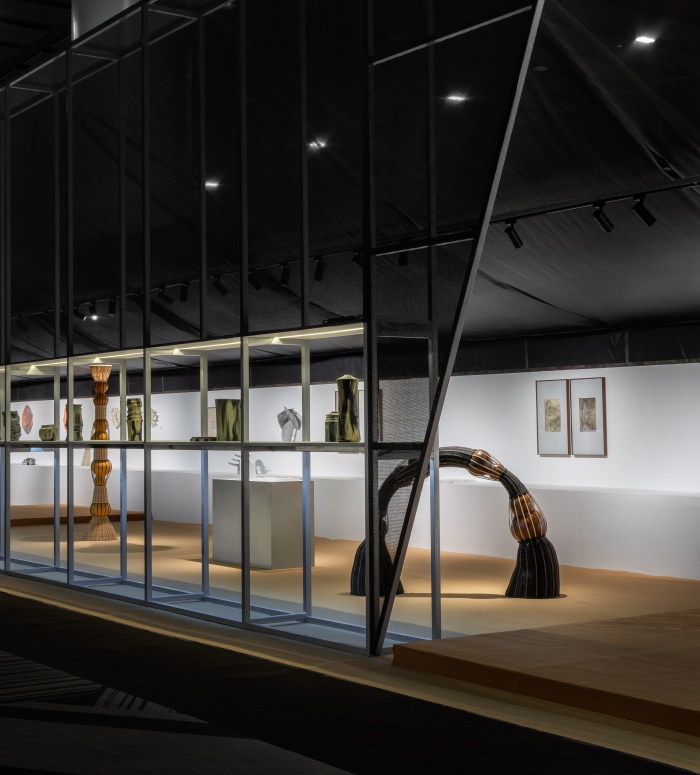 2023年設計之春·中國家博會“當代設計展”“CREATEin創造中”版塊,聯合策展人宋濤、吳昊宇、王克震以 陶瓷和玻璃為主要內容,集合了23位藝術家的優秀作品。從藝術和人文角度審視、展望工藝的脈絡及發展,通過當代藝術創作面貌的呈現與梳理,展現在當下時代中材料藝術的價值與意義。本次展覽空間特邀郭廖輝建筑工作室進行展陳空間設計,以“回廊”為設計靈感的展線設計,與展品及展場環境相得益彰,令觀眾充分地感受玻璃與陶瓷之美。