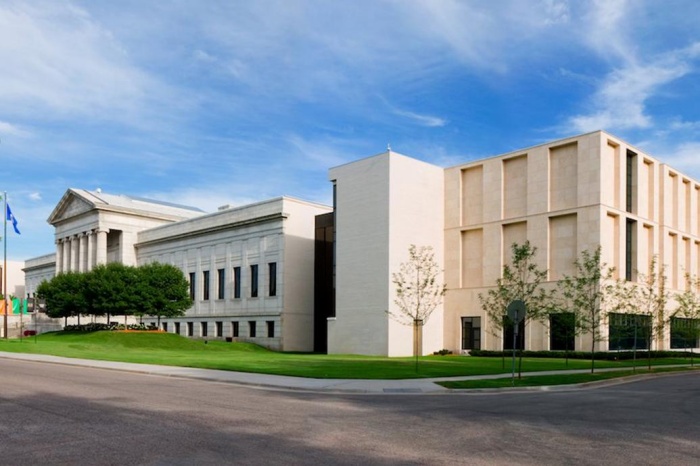 1911年1月3日,建館才28年的明尼阿波利斯藝術博物館(當時棲身于1889年建造的市公共圖書館內),接到了當地涉足木材、鐵路和銀行生意的克林頓·莫里森(Clinton Morrison)先生的來信。他在信中建議,在城中擇一地勢高、光線足之寧謐整潔之處,建立建筑宏偉的永久性藝術博物館,而這佳處,除了他家一塊10英畝的地(約60.7畝),別無它選;假如博物館董事會能籌集50萬美元用作蓋房之資,他愿意捐出他家那塊地,以此紀念他那位曾任本地市長的父親。一周之后,董事會舉辦了一個籌款晚宴,藝術博物館創辦人之一,面粉商人威廉·胡德·鄧伍迪(William Hood Dunwoody)豪氣干云地擲出10萬美元,90分鐘之內,晚宴出席者認捐了33萬5千5百美元。數天之后,全部資金到位。又過了四年,1915年1月7日,宏偉壯觀、有著新古典主義建筑風格的明尼阿波利斯藝術博物館建成開放。