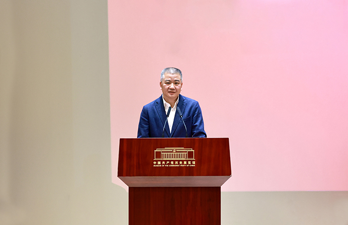 5月22日,由中央廣播電視總臺、浙江省委宣傳部、浙江出版聯合集團主辦的《美術經典中的黨史》畫冊首發儀式在中國共產黨歷史展覽館舉行。中宣部副部長、中央廣播電視總臺臺長慎海雄出席,并與嘉賓共同為畫冊首發揭幕。中央廣播電視總臺副臺長王曉真、中國出版協會理事長鄔書林、原中央黨史研究室副主任章百家等在活動上致辭。