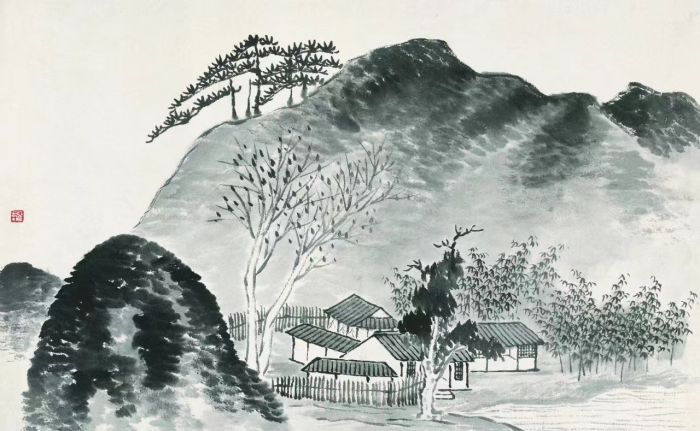 借山圖之十二 齊白石 30cm×48cm 紙本設色 1910年北京畫院藏