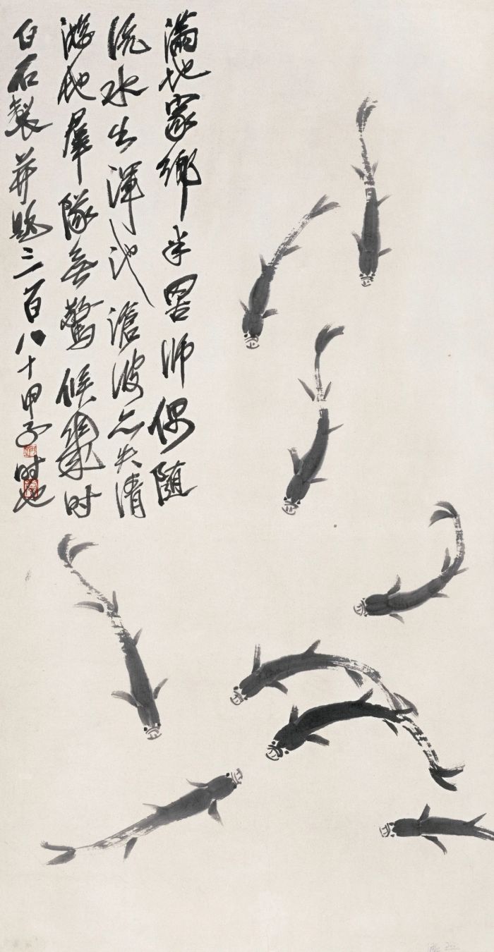 小魚圖 齊白石 82×42.5cm 紙本墨筆 1925年 北京畫院藏