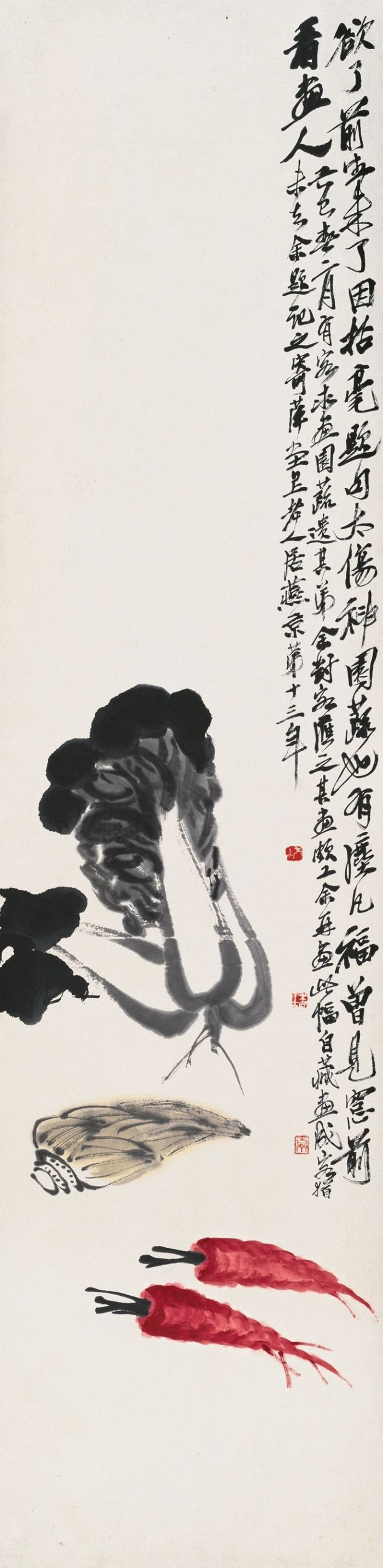 白菜胡蘿卜 齊白石 138×34cm 紙本設色 1929年 北京畫院藏