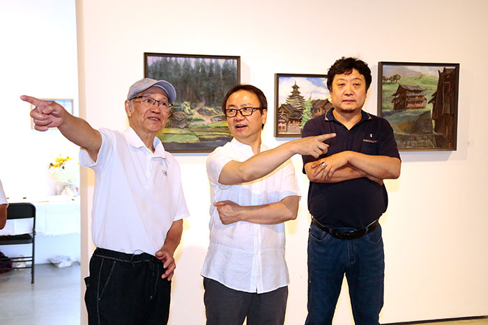 中國油畫院副院長朱春林(中)參觀展覽(攝影 馮世光)