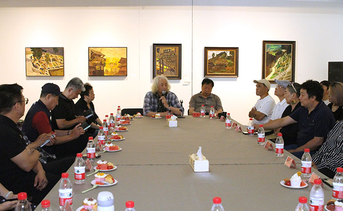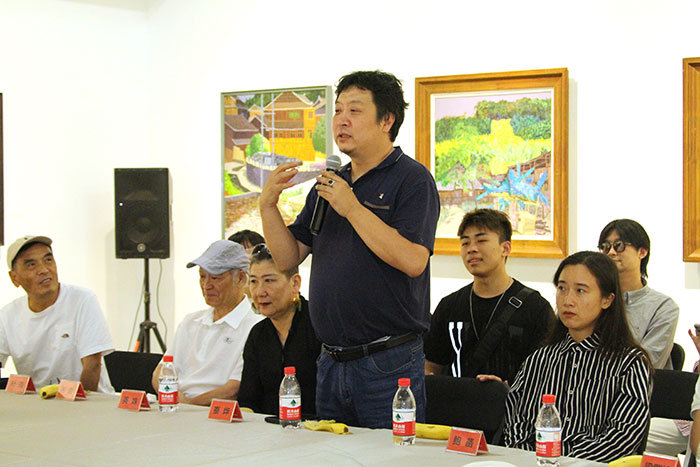 展覽學術主持、北京師范大學藝術與傳媒學院美術與設計系教授古棕主持研討會(攝影 馮世光)