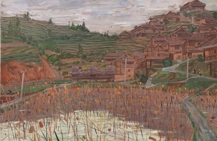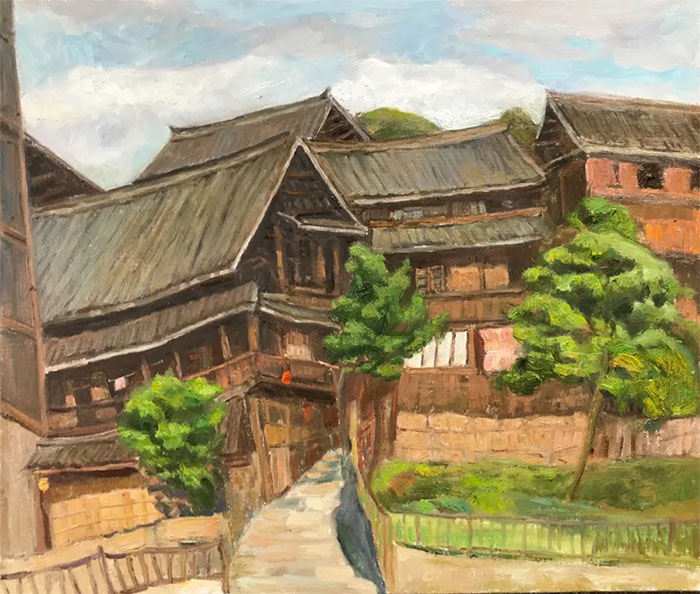 黃遠鵬,《侗寨人家》,60x80cm,2023年