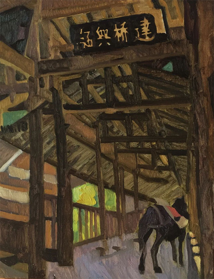 古棕,《侗族風雨小橋》,50x60cm,2023年