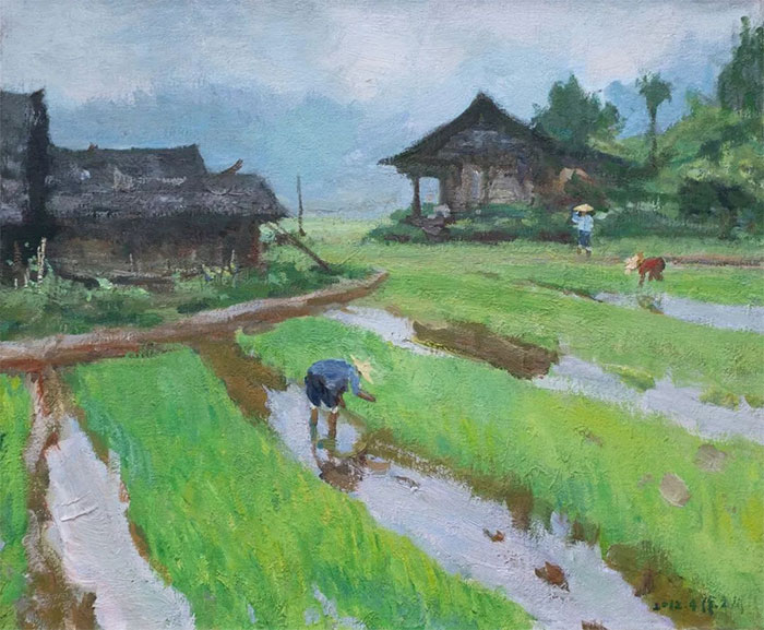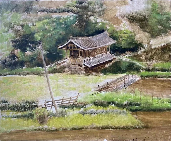 對少數民族生活環境與人文狀態的了解同樣是藝術家古棕此次寫生和創作的目的。古棕表示,“每次從都市中走出,來到自然環境幽靜甜美的鄉村田園,對人的狀態和內心都是一次清洗。寫生是對真實生活和真實景物的再現與表達,它可以為生活給予新的觀察視角。今天的藝術家和美院學子普遍生活在城市,對于中國廣闊的地理風貌和不同民族人民的生活環境、生活狀況、文化風俗缺乏了解,而這種了解對于理解我們民族的文化,對于藝術家的個人成長和自我完善都是極為必要的?!?/p>