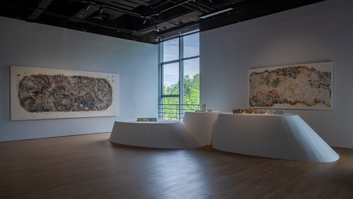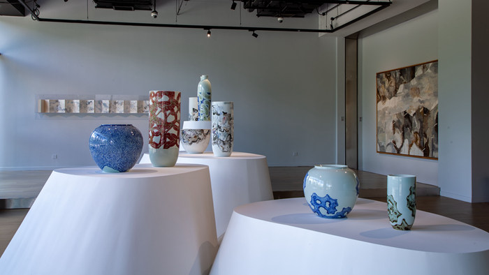 展覽在壹美美術館一樓和二樓展出,展示藝術家白明對陶瓷、水墨、油畫、大漆等多個領域的藝術語言范式進行探索的實踐痕跡與心路歷程。白明的藝術之旅超越了形式與造型的局限,崇尚著對于物性本質的回歸與溯源,傳遞出一種東方古典美學的清雅意境。