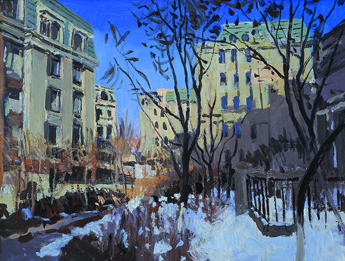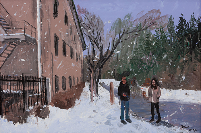 長春這座城市承載著東北老工業基地的民族工業發展記憶。作為一位生于斯長于斯的畫家,王建國對這座城市有著難以割舍的情懷,數十年來一直堅持以畫筆記錄著這座城與城中人發生的故事。在近五年的都市題材創作當中,我們既可以看到長春的城市景象和工業遺址,也可以看到城中人的精神風貌和生存現狀,北方特有的冬日暖陽和雪地上的腳印串聯著過去、現在及未來。光色交融的勃勃生機流淌在城市之中,煥發在人們身上,更充盈在畫面的每一個角落。其作品蘊含了畫家對一方故土的眷戀和熱愛,更抒發了對老一代人在改革開放的洪流下偉大實踐歷程的贊頌,寄托著對東北全面振興的文化自信和期許,這是傳承,是守望,更是希望。對昔日飽含溫情的回眸與這座城市當下的現實敘事融合在一起,呈現出宏闊的工業文明景觀和敏銳的時代感,書寫著長春特有的地域文化和人文精神。