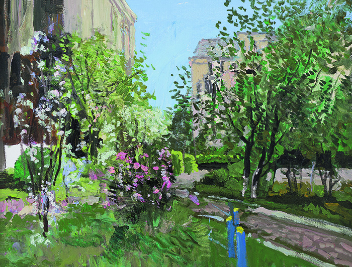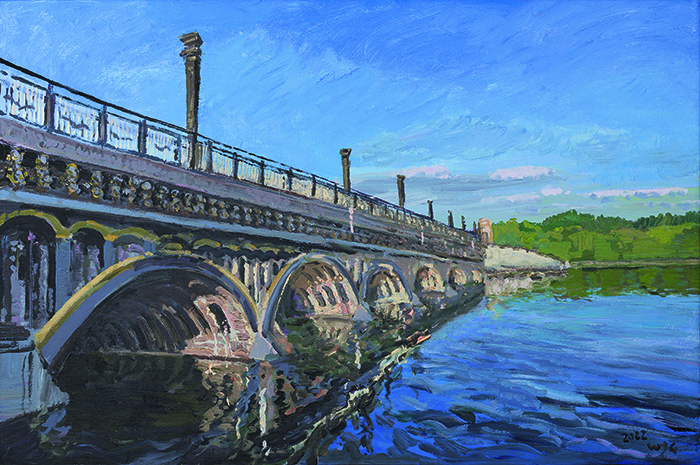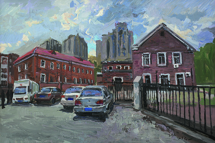 王建國作為東北寫意油畫的代表畫家,在表現性語言的基礎上進一步研究探索:一方面是對東北廣袤的原野、恢宏的大地以及厚重的景觀抒寫,“以自然為師”的藝術觀念在繪畫實踐中的誠摯表達。另一方面試圖通過描繪當代人與這城市歷史的內在關系,喚起潛藏在城市景觀中的獨特記憶和秩序,呈現特有的視覺場域和人文精神。把“西方的表現性油畫”和“中國傳統寫意性繪畫”相結合作為研究課題,形成獨具風格的寫意油畫。