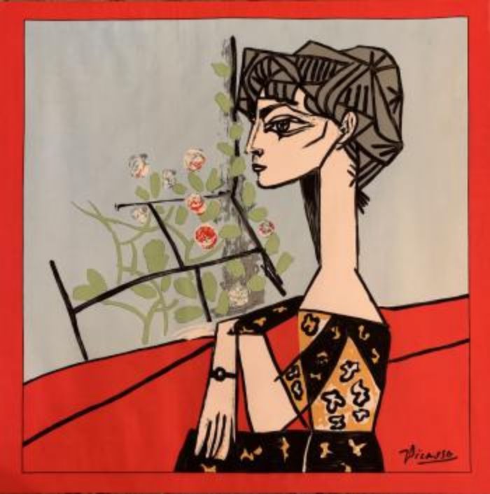 畢加索 《杰奎琳與花》71X71cm 1954年作 套色版畫