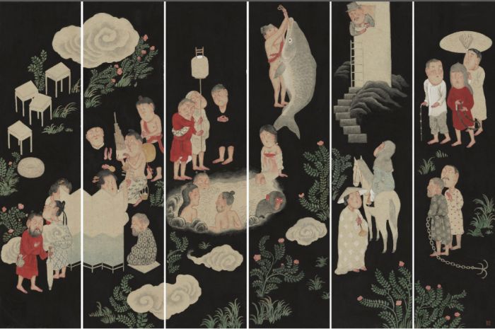 代英倫 人群,章回繡像本的尋訪 紙本設色 138×204cm