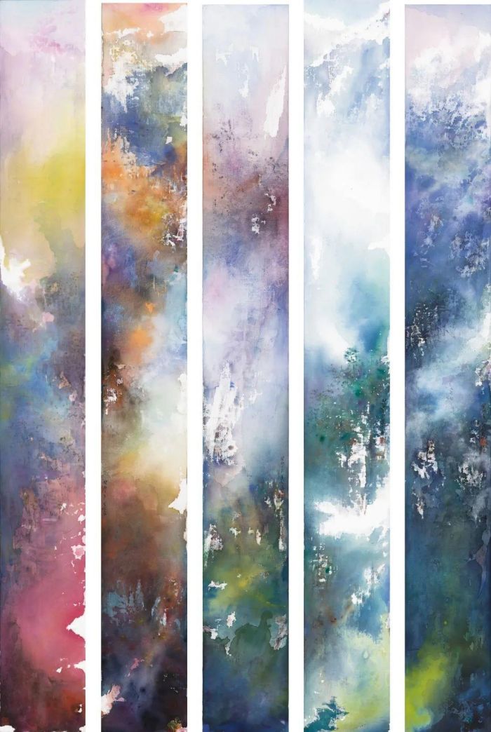 葛楊 無題系列作品 170×20cm一組五幅水墨絲綢畫 2023