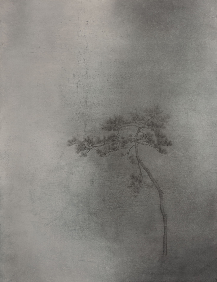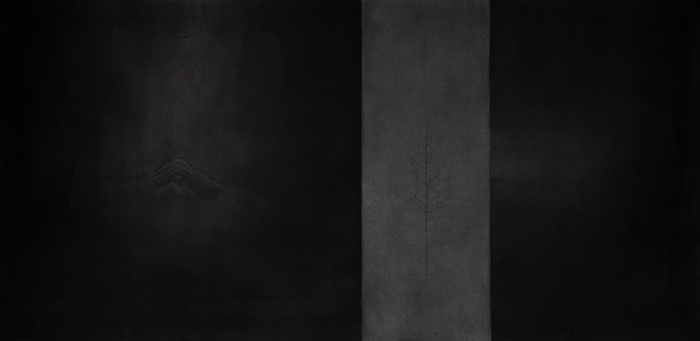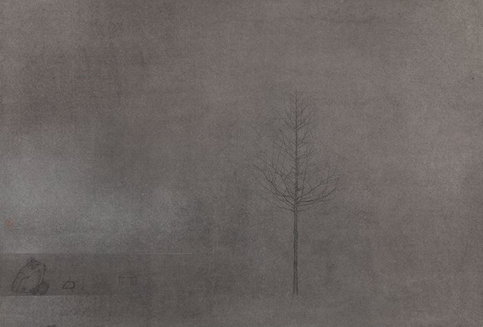 本次展覽將展出朱建忠和杉山功的30余件作品。朱建忠往往會在寂靜深遠的世界里孤立一棵樹,一個人,或者留白出空茫的天地。仿佛是源于中國傳統道教的世界觀:追問人為何?神為何?