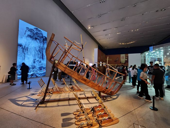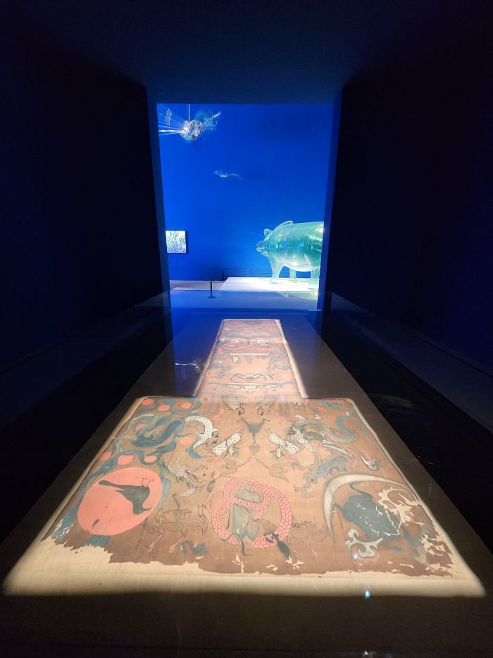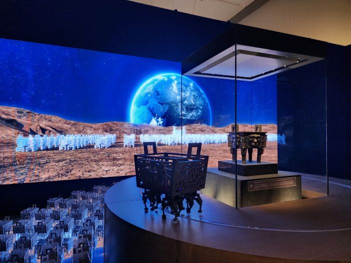 從 6月30日起,一個前所未有的展覽在湖南博物院一樓特展一廳亮相。來自全球30位藝術家用32件當代藝術作品,為觀眾展示了一個古今對話、充滿互動的人文場域,其中 5組藝術家首次用數字藝術的方式與湖南博物院館藏的5件國寶級文物對話,帶領觀眾展開一場面向數字藝術和古代文明的雙向奔赴,進行一次穿越歷史時空的奇妙“神游”。