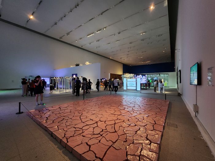 解丁泉的參展作品名為《皮膚》,這件作品關于中國最大的淡水湖——鄱陽湖。去年鄱陽湖大旱,湖水面積縮減創下了歷史之最。藝術家在鄱陽湖拍攝取材了干旱面積的一千萬分之一的面積,燒成了700余塊大小不規則的陶瓷。自然與生態環境的變化成為了世界性的問題,藝術家以此來喚醒我們對極端自然環境的關注。