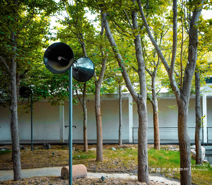 在北京通州潞苑北大街的轉角處,有一座寬敞的院落,里面迂回曲折,左邊有幽靜的園林和餐廳,右邊是幾座模塊化的現代建筑,中間建筑白色外墻上清晰地標示著“聲音藝術博物館”的字樣。這里就是由藝術家秦思源與洪峰合作發起的關注聲音藝術的神奇博物館。