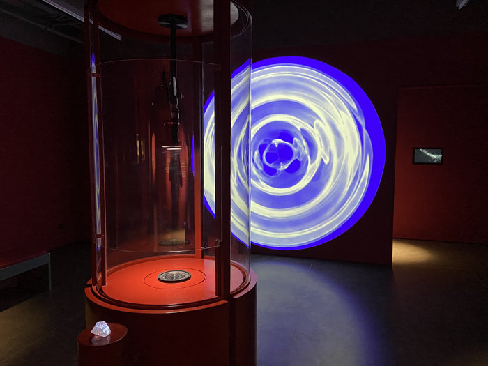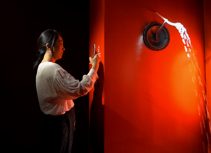 秦思源:不是我設計的,是我設置的,我知道那些聲音互動裝置的原理是什么,我可以做簡單的裝置,但是我不會做博物館里可操作的、穩定的裝置。后來我找到一個叫覺然的法國人。我知道他在做相似的事情。他的作品里常常用音流學的因素,也用聲音與激光。其他的裝置雖然沒做過,可是原理和操作系統能掌握,所以跟他合作來完成這些裝置的內部結構和互動操作。他也設計了現場的布局,裝置擺放的方式和位置??墒敲總€裝置的外形是陳超和城集完成的,因為需要跟博物館整體的設計風格保持一致。因此概念、技術和設計最后結合的不錯。