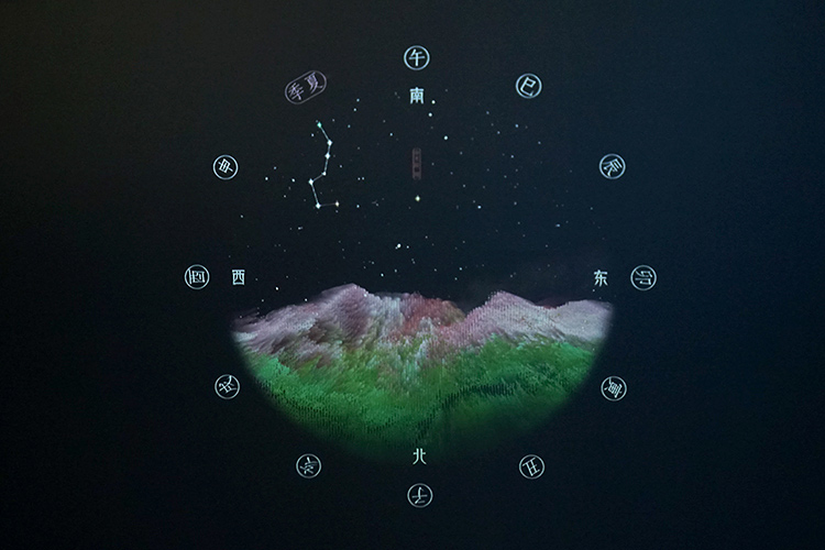 太空之上,星月交輝??缃缢囆g家展現出他們波瀾壯闊、恣意浪漫的想象力。數字互動影像裝置《天體樂章》由安久聯合技術藝術家李昊哲和音樂制作人錢正昊共同創作,讓星體的位置關系、明暗變化、化學構成變得可視、可聽,將天文和步天歌的浪漫有機結合起來。