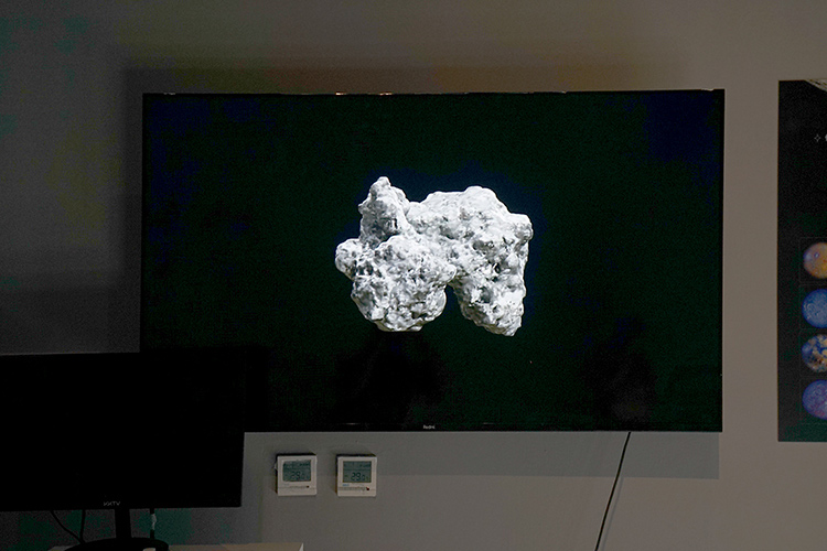 來自策展人安久的作品《深空》意在尋找“光之國”。約1600光年外,獵戶座方向,M78星云中孕育著無數顆熾熱的恒星,塵埃反射出幽藍色的光芒。仿佛在訴說,當我們抬頭仰望星空時,也許那些兒時崇拜的英雄們也在光年之外注視著我們。