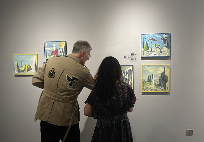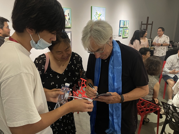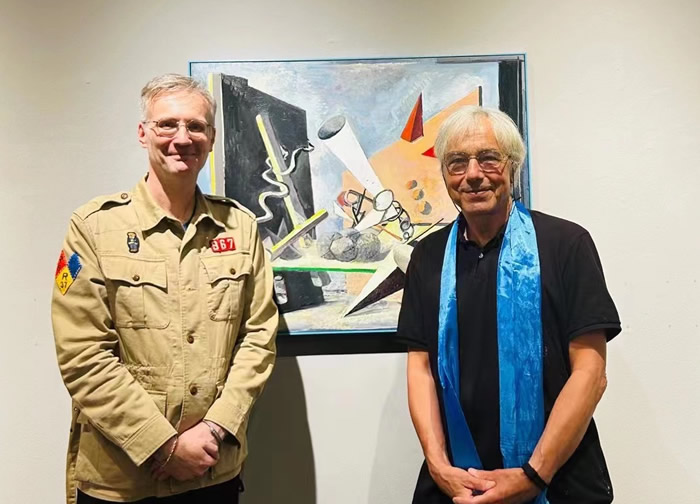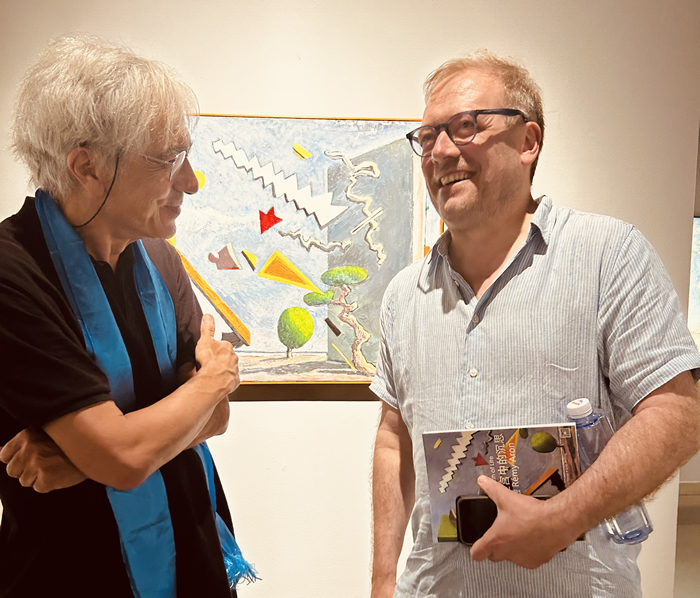 法國駐華大使館文化參贊裴國良(Nicolas Pillerel)(左)與中國藝術研究院朱春林老師(右)前來觀展