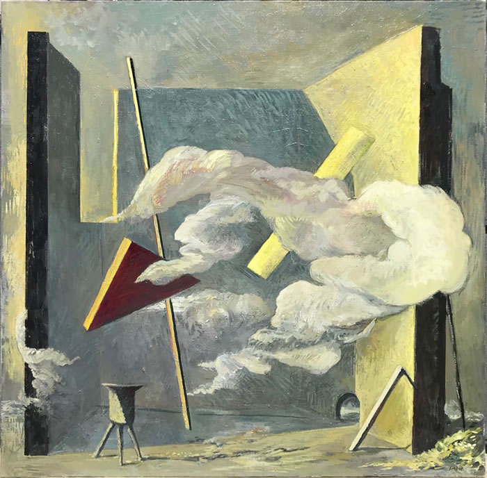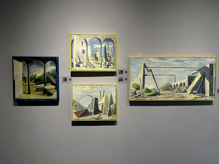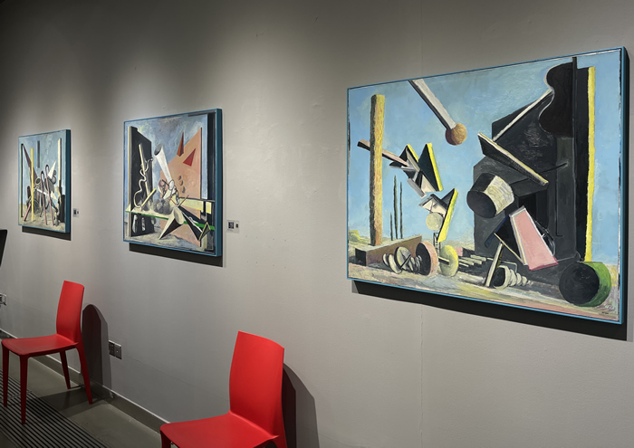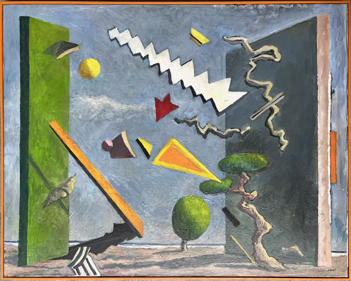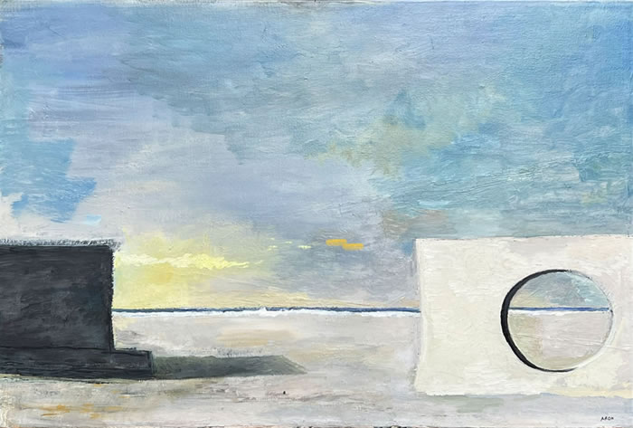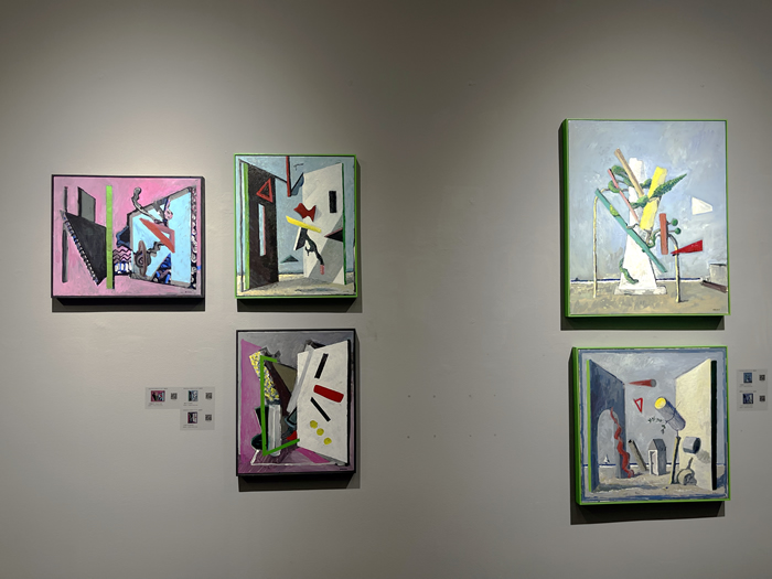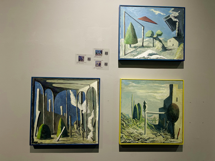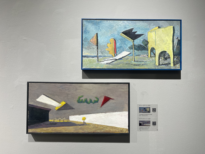 的確,駐足作品前,有一種似曾相識的幻覺:房屋、海邊、山川、墻壁,它們錯落組合,營造出通往未知的窗口;草木、靜物,天邊不經意飛過的云朵和散落在畫布上的一枚小花兒,暗示著我們似乎來過這里;一些不斷變換顏色的符號反復出現其中:三角形、箭頭、線條、螺旋,仿佛滿載箴言的暗語......本次展覽正如迷宮不會對試圖穿過它的人施加任何影響一樣,藝術家讓我們在觀賞后進行深思。