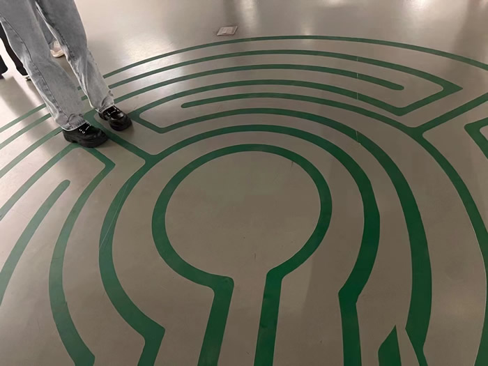步入畫廊主展廳,地面上的迷宮圖案格外顯眼