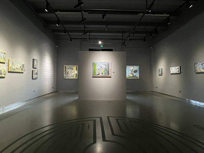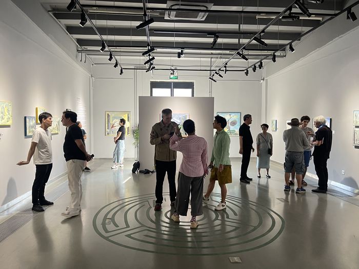 步入畫廊主展廳,地面上的迷宮圖案格外顯眼。無疑,這是為了呼應本次展覽而精心策劃的。策展人Fred Dervin(文德)教授將本次個展主題命名為“迷宮中的沉思”,在他看來,迷宮是人類恒久的主題,它是人與社會的關系,也是人與自我的關系?!懊詫m是一個封閉而蜿蜒的建筑群(方形或螺旋形),由房間和走廊組成,有對稱和規則的形狀、交叉點、死角和假軌道,我們難以理解和把握。形象地說,迷宮這個詞在許多語言中經常被用來指代復雜的情況或曲折的推理。據說迷宮也來自拉丁語的勞動(labor intus),表示一項艱巨的任務。同樣,藝術家雷米·艾融 (Rémy Aron) 在曲折的‘迷宮’中穿行也并非易事,即使他的作品中存在我們熟悉的東西和反復出現的事物,但這種‘誤解’需要通過往復的觀察去找到答案,從而獲取理解?!?/p>