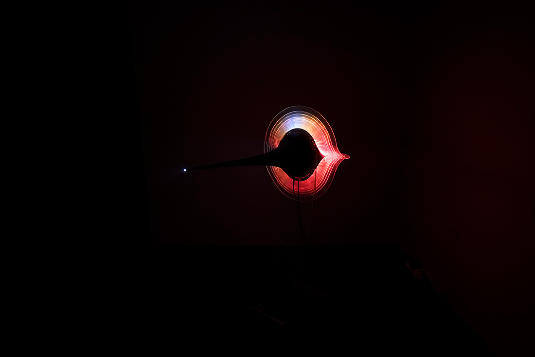 《黑洞》,伊安尼斯·克拉尼迪奧提斯,2019。黑洞,幾乎是我們最常提及的天文現象,你能想象有一件作品將黑洞這一“我們認知的盡頭”轉化為可以用指尖碰觸的聲光雕塑嗎?(攝影:蘭紅超)