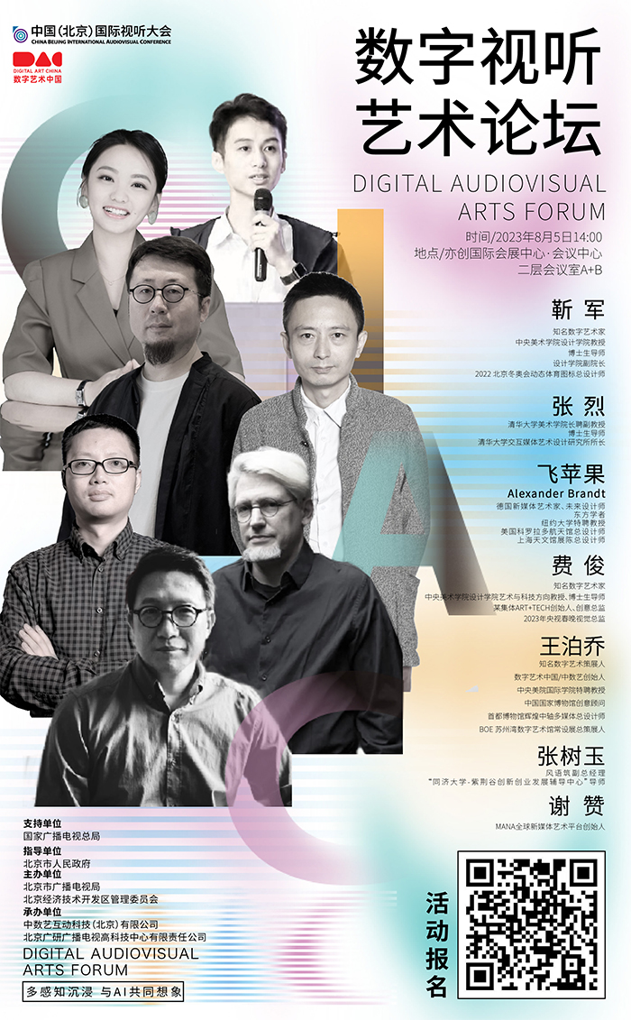 作為講好中國故事、傳播好中國聲音的重磅論壇之一,2023中國北京(國際)視聽大會之數字視聽藝術論壇由中數藝互動科技、北京廣研廣播電視高科技中心共同承辦,將于2023年8月5日14:00在亦創國際會議中心如期啟幕。本屆論壇以“多感知沉浸,與AI共同想象”為主題,齊聚各賽道專家和企業領袖,將圍繞數字視聽藝術領域的多個熱點議題,開啟一場國內外數字視聽藝術領域的尖峰對話,助力本次視聽大會提升國際傳播影響力。