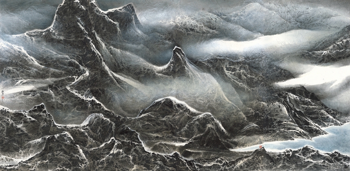 劉國松 雪景遠上白云間 2020 水墨設色紙本 187.5 x 385.5 cm 劉國松基金會捐贈 新加坡國家美術館收藏