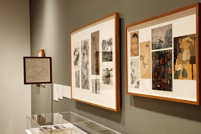 劉國松紙(左)與劉國松早年臨摹傳統水墨和西畫作品(右)