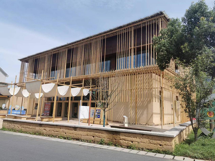 張雷:我們給青山村定下大的調子,但是我們不定風格,風格可以多元。我們每周會參加黃湖鎮的工作會議,會議會涉及到公共建設,我們不討論某個設計好看不好看,但對和錯我們可以清楚的討論出結果。比如在王母山上,原計劃要修一個牌子,我們的建議是不建牌子,而是建涼亭。我們邀請了研究涼亭文化的建筑師王俊磊博士,中國的鄉村本來是有大量的涼亭,“送客要送到十里涼亭”,但現在涼亭都消失了,所以我們在青山村想要恢復涼亭文化。王俊磊博士并沒有做古涼亭,而是新的木作結構。還有青山村的公交車站不用城里公交車站樣子,而是請設計師設計在地的公交車站。我們請了三位建筑師羅宇杰、趙星、陸翔老師做了三個方案設計,每個方案有大中小微4個公交車站,我再去推動事情落地。建筑師陳浩如老師做未來鄉村訪客中心設計,一共做了兩年,非常艱難,但有很大的意義。訪客中心體量比周圍建筑大,所以會有壓迫感。于是陳浩如用竹子把建筑隱藏起來,這樣就非常協調和軟性了。這是用竹子很對的地方,我比較反對刻意用竹子,但這里是實用的,而不是裝飾。