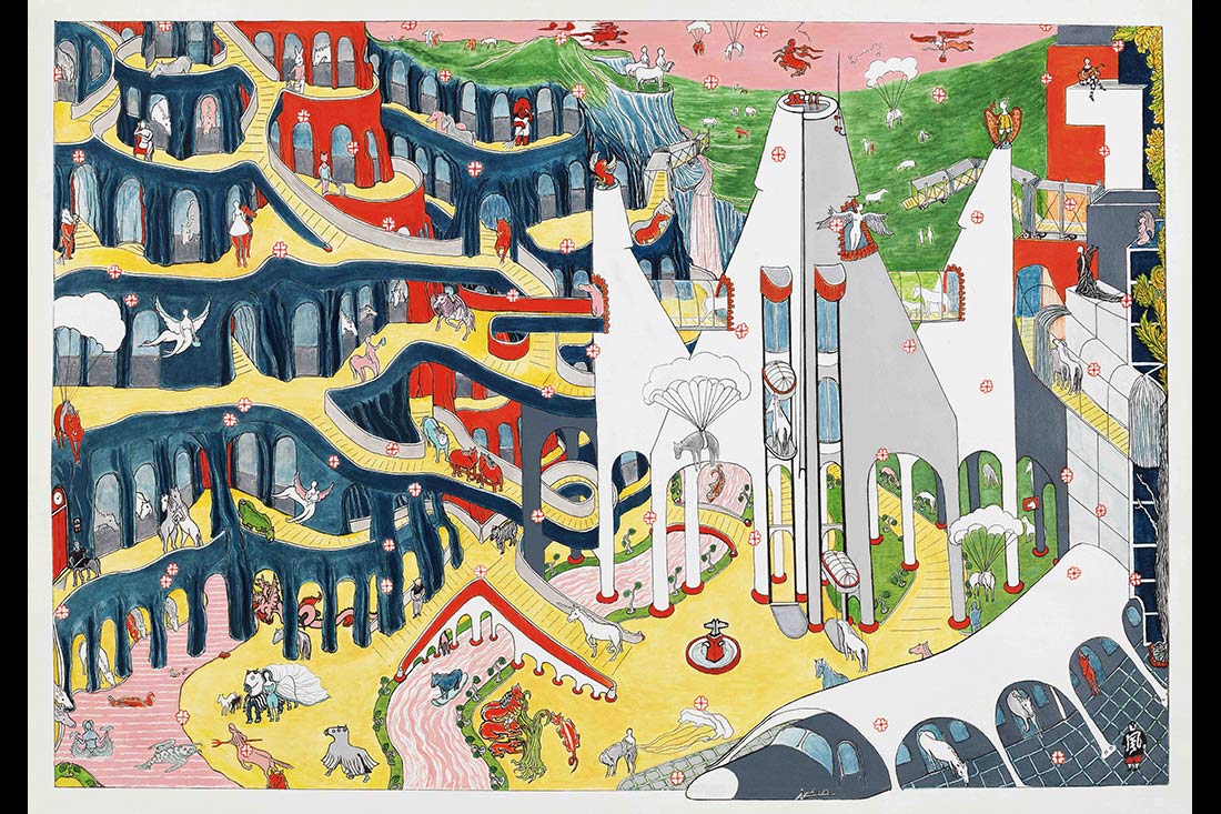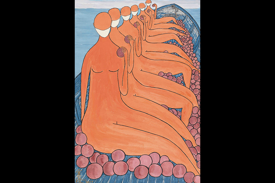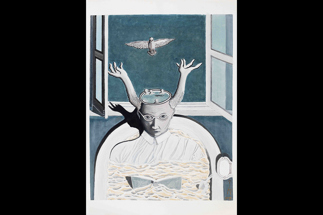 本次展覽的一大亮點是金宇澄作品的集中呈現。過去十年,他的繪畫作品已近500幅,尺寸、形態和主題各異,充滿了天馬行空的想象,糅合象征與神秘意味。本次展覽精選了其中100余幅,試圖勾勒藝術家的創作變遷。(攝影_蘭紅超)