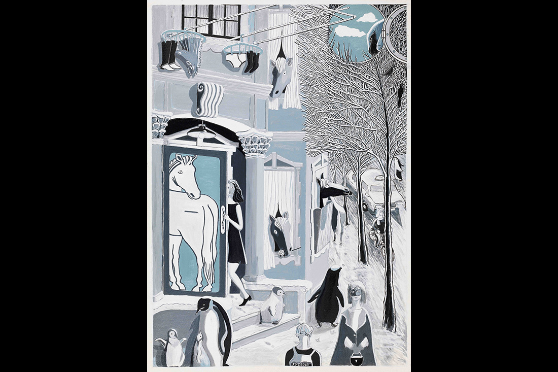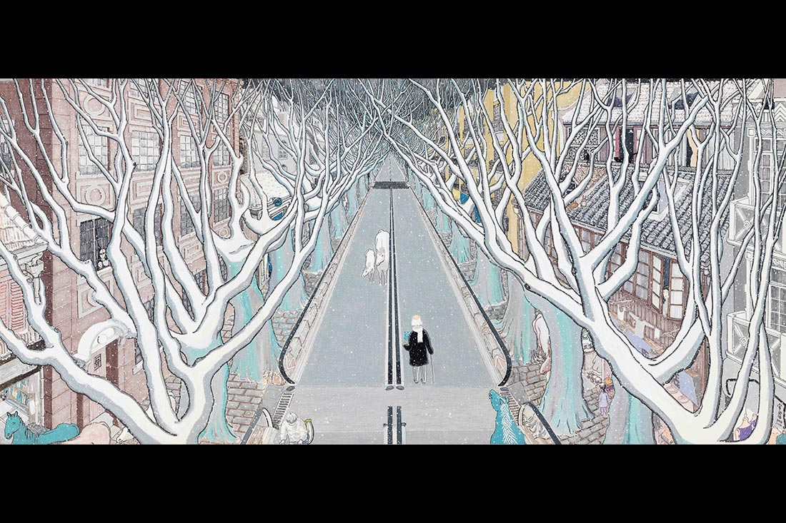 過去十年間,他創作了一系列從尺幅、題材、媒介到畫法各異的復雜圖像系統:回憶舊事舊景,幻想和實驗讓某種可能生長、讓不同的事物對話,按上海作家小寶說,金宇澄處理物相的方式“有如愛德華·霍普筆下的紐約,一切很熟悉,但又找不到對應的事物”。(攝影_蘭紅超)