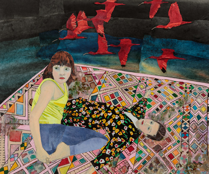 瑪麗亞·貝利奧(1982年生) 《飛行之夢》 水彩 和紙拼貼 畫布 152.4 x 182.9 公分 2019年作 估價: 1,800,000 – 2,800,000 人民幣 260,000 – 390,000 美元