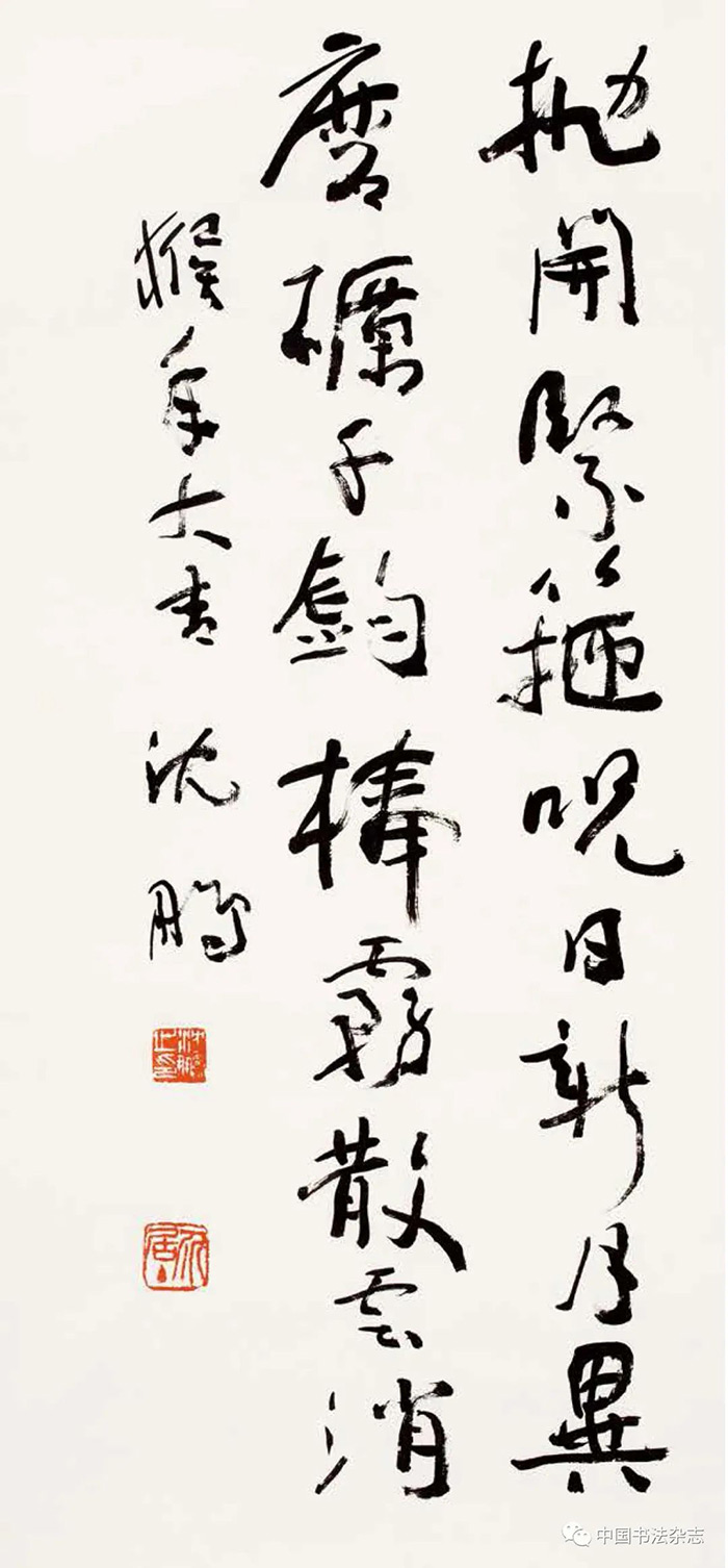 沈鵬 行書九言聯 縱90 cm 橫45 cm×2 2016 年