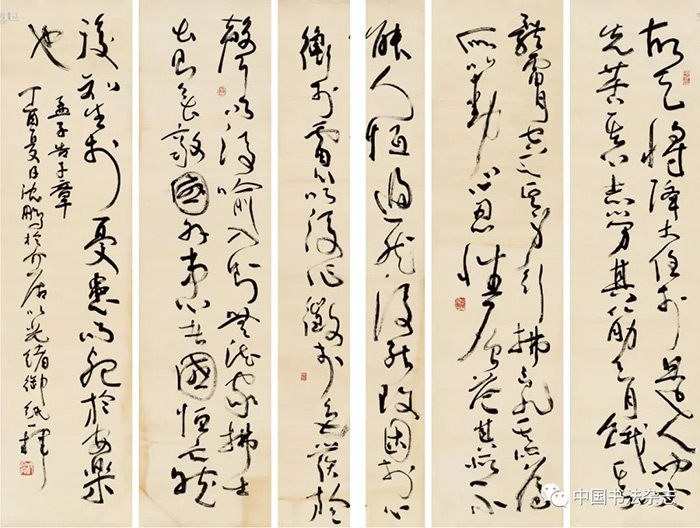 沈鵬 草書孟子告子章五條屏 縱136cm 橫35cm×5 2017年